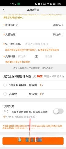 填寫游戲區服、商品類目等必要信息,就能快速達成交易。