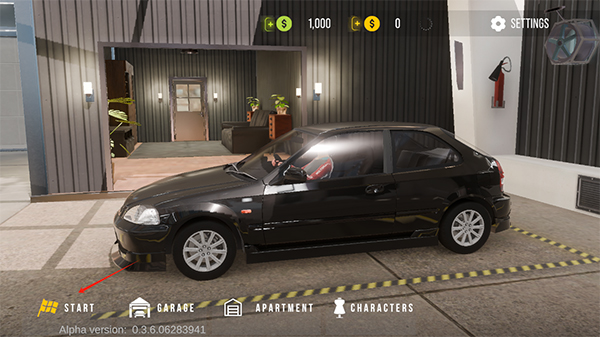 啟動(dòng)游戲后進(jìn)入車(chē)庫(kù),找到左側(cè)標(biāo)有【CAR SETTINGS】的齒輪圖標(biāo)并點(diǎn)擊,即可打開(kāi)車(chē)輛改裝界面。