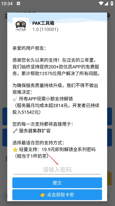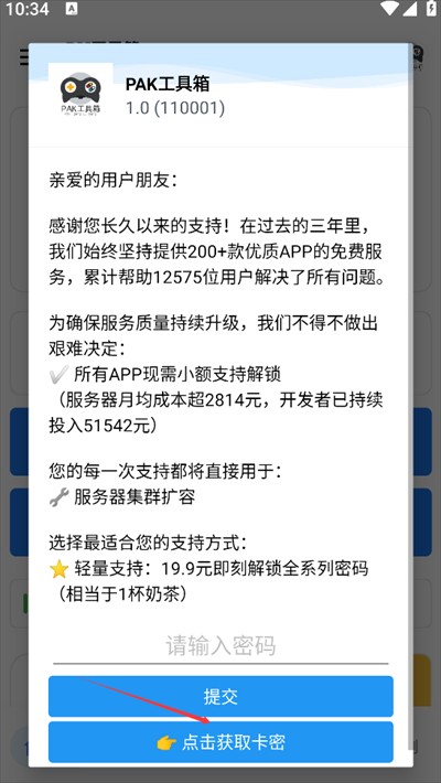 點擊下方的獲取卡密,通過跳轉網頁獲取卡密。