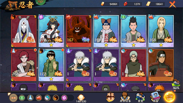 前期招募英雄時,把商城和各種禮包里帶招募券的都買下來,然后一次性全部用掉。之后根據招募到的英雄所屬陣營來挑選搭配,隊伍里要確保至少包含2個坦克、1個輔助、1個奶媽和2個輸出位的基礎陣容。到了中后期,就慢慢攢伙伴幣和忍者許愿幣,用來替換掉當前陣容里的英雄就行。
