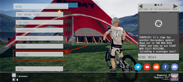 打開游戲后,進入游戲頁面,找到并點擊SETTINGS選項,它的位置就像下圖所展示的那樣。
