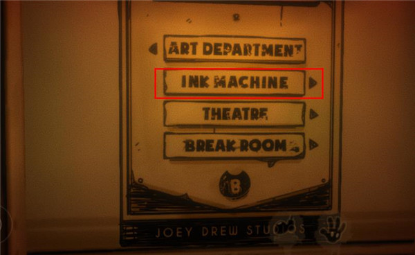 首先,我們得進入那間門上標著“INK MACHINE”的油印機房間,在這個地方觸發啟動油印機的任務。