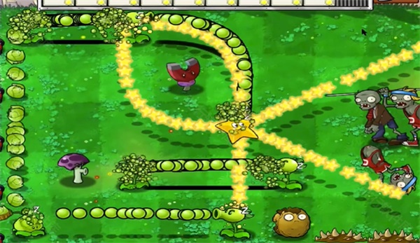 卷心菜投手的攻擊軌跡為向上發射,要是其射擊軌道上存在其他植物,那么這些植物同樣會隨之發射子彈。