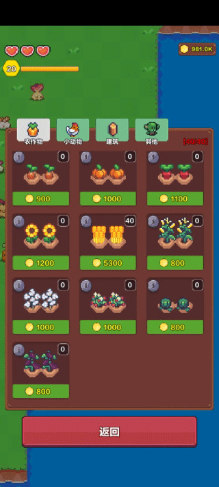 所有植物、農田、家禽等的價格都在上漲,前期要合理分配金幣。