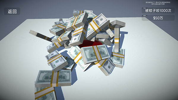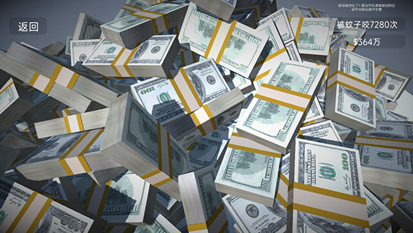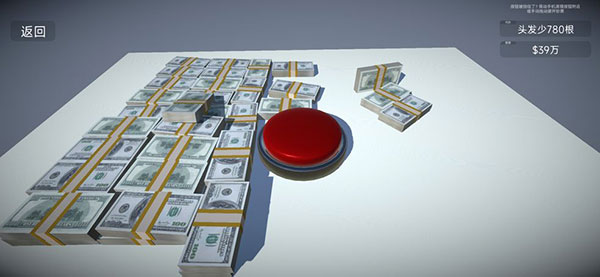 持續(xù)點擊紅色按鈕,還會不斷掉落成捆的鈔票,直至鈔票鋪滿整個屏幕,把按鈕都遮擋住。