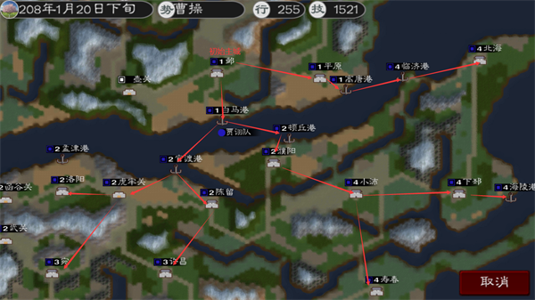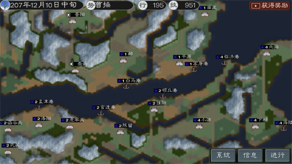 屏幕上方的“行”字代表行動力,它是支撐你開展軍事與內政行動的關鍵資源。游戲前期行動力十分稀缺,務必珍惜,千萬別隨意浪費!要是行動力耗盡,那就只能暫時擱置操作,等待下一回合刷新恢復了。