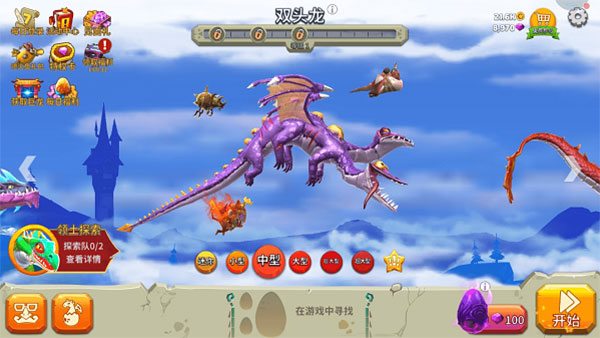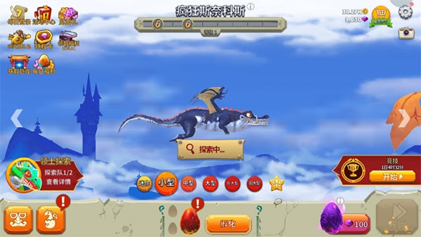 玩家一開始只有一條小龍,得在天空里捕食才能讓它成長。這個游戲里的寵物需要自己找蛋來解鎖,龍則是等當前這條的生長度滿了,再用金幣購買就能解鎖下一條。