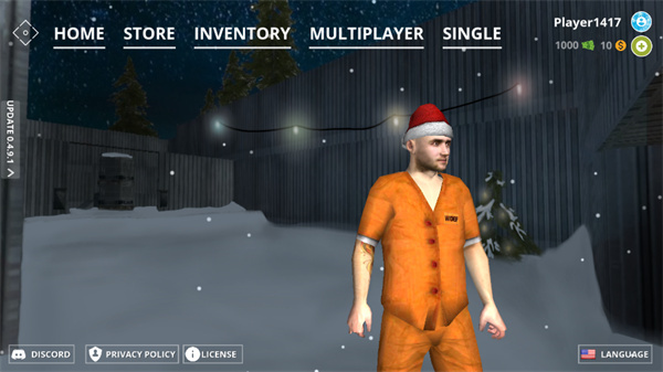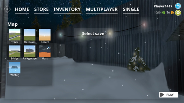 進入游戲后,界面上從左到右排列著五個功能選項,依次為主頁(home)、商店(store)、倉庫(inventory)、多人游戲(multiplayer)和單人游戲(single)。