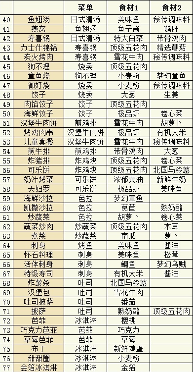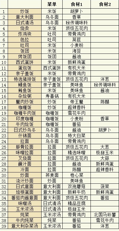 ps:經營計劃中前綴為食譜的為僅獲得食譜,前綴為菜單的,為獲得可以上架售賣的料理以及可以制作后續料理的菜單。