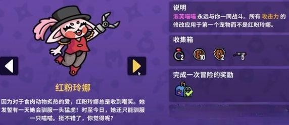 能力:可以召喚一只泡芙喵喵輔助玩家戰(zhàn)斗,不過寵物攻擊力的調(diào)整僅適用于第一個(gè)寵物,并非紅粉玲娜。
