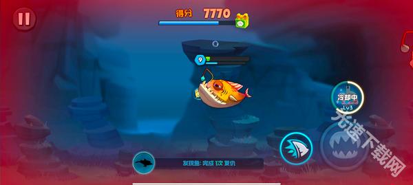 要是遇到其他大魚,生命值就會減少,一旦生命值耗盡,游戲便宣告結束。