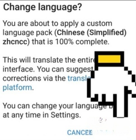 最后在彈出的窗口里點(diǎn)擊CHANGE按鈕,就能切換到中文界面使用Telegreat了。
