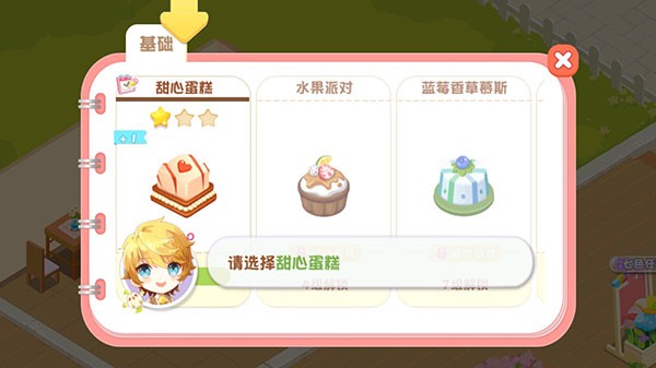 先點擊烤箱上蛋糕,選擇甜心蛋糕。