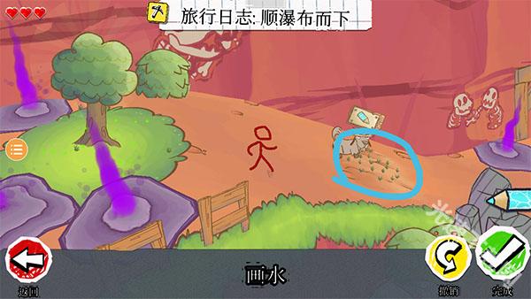 用畫筆在前方隨意畫幾筆,制造出水后便可通過(guò)