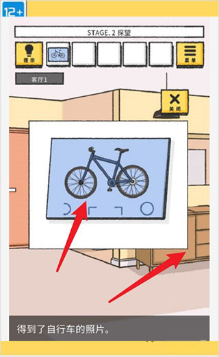 在游戲界面的桌子上找到照片即可獲得自行車道具。