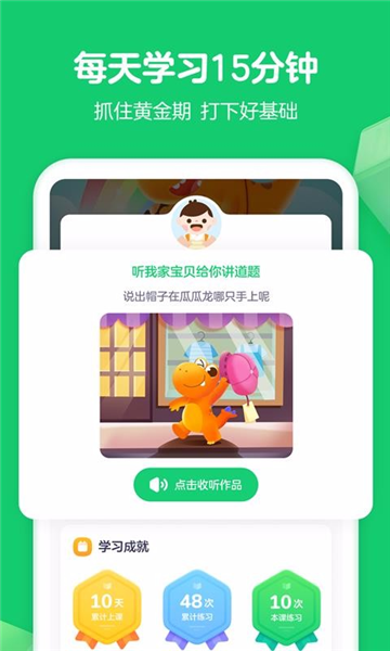 課堂上開展趣味學習活動,課后有輔導老師提供在線1對1全程督學服務并糾正發音,確保學習效果有保障。