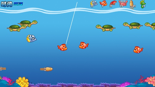 釣魚的方法其實很簡單,我們只需要點擊屏幕,上方的魚線就會向下延伸,當魚線頂端剛好碰到魚的時候,就能把它釣起來了。這個大家多嘗試幾次就能輕松釣到魚啦。