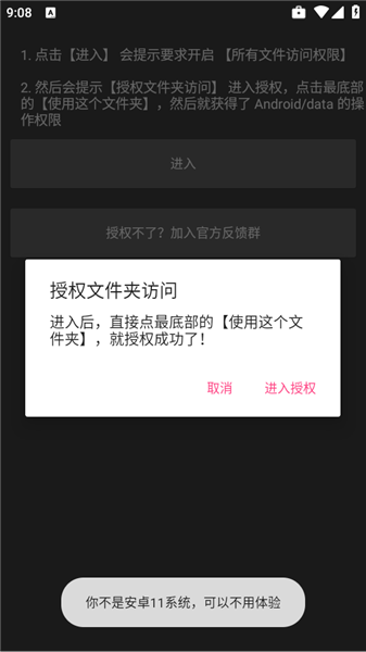點擊【進入】會提示要求開啟【所有文件訪問權限】。