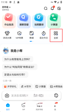 打開作業(yè)幫App,選擇年級后點擊全部。