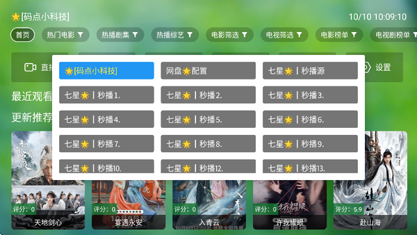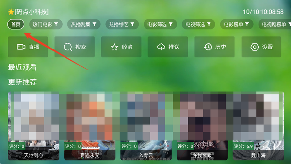 進(jìn)入軟件,點(diǎn)擊左上角首頁(yè)有很多播放源可以切換