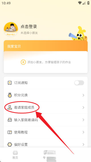 家長可通過進入“我的 - 邀請家庭成員”頁面,生成4位邀請碼,以此邀請其他家庭成員加入。