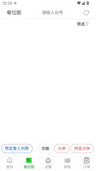 點擊餐位圖,可輸入臺號和查看預定客人列表。