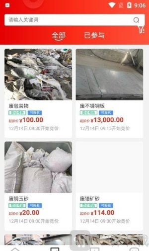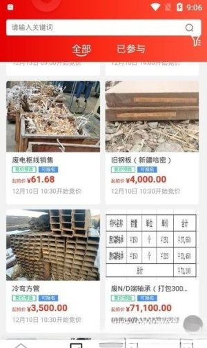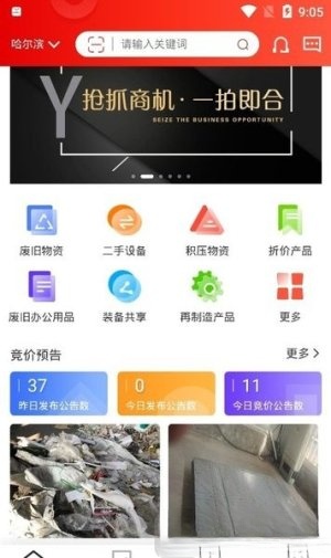 打開“競拍大廳”,瀏覽各類廢舊物資與閑置設備