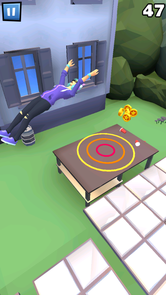目標(biāo)是跳進(jìn)這些帶有顏色的圈里,離中心越近,得分就越高。