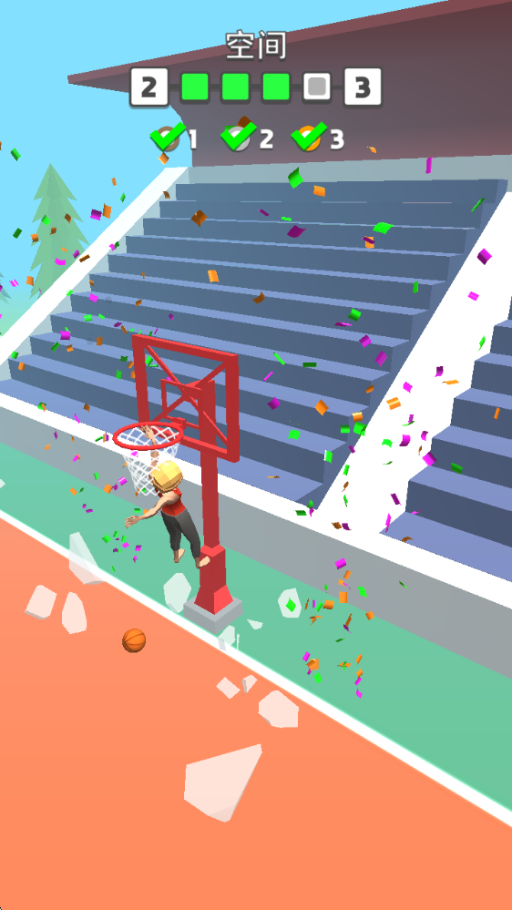 游戲的關卡難度會逐步提升,玩家得借助各類道具在空中完成翻轉動作,把籃球帥氣地扣入籃筐。
