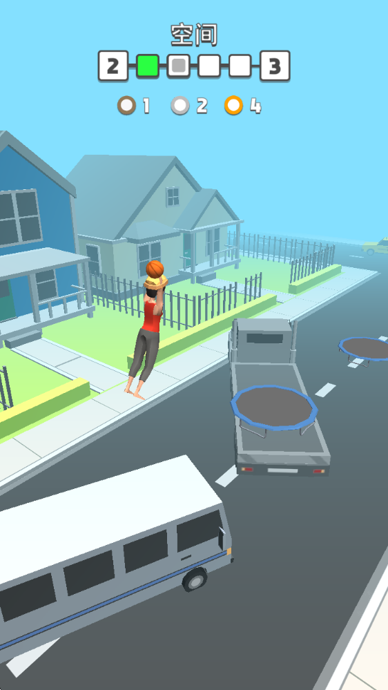 開始挑戰后,輕點屏幕就能起跳,接著按住屏幕便能在空中翻轉。