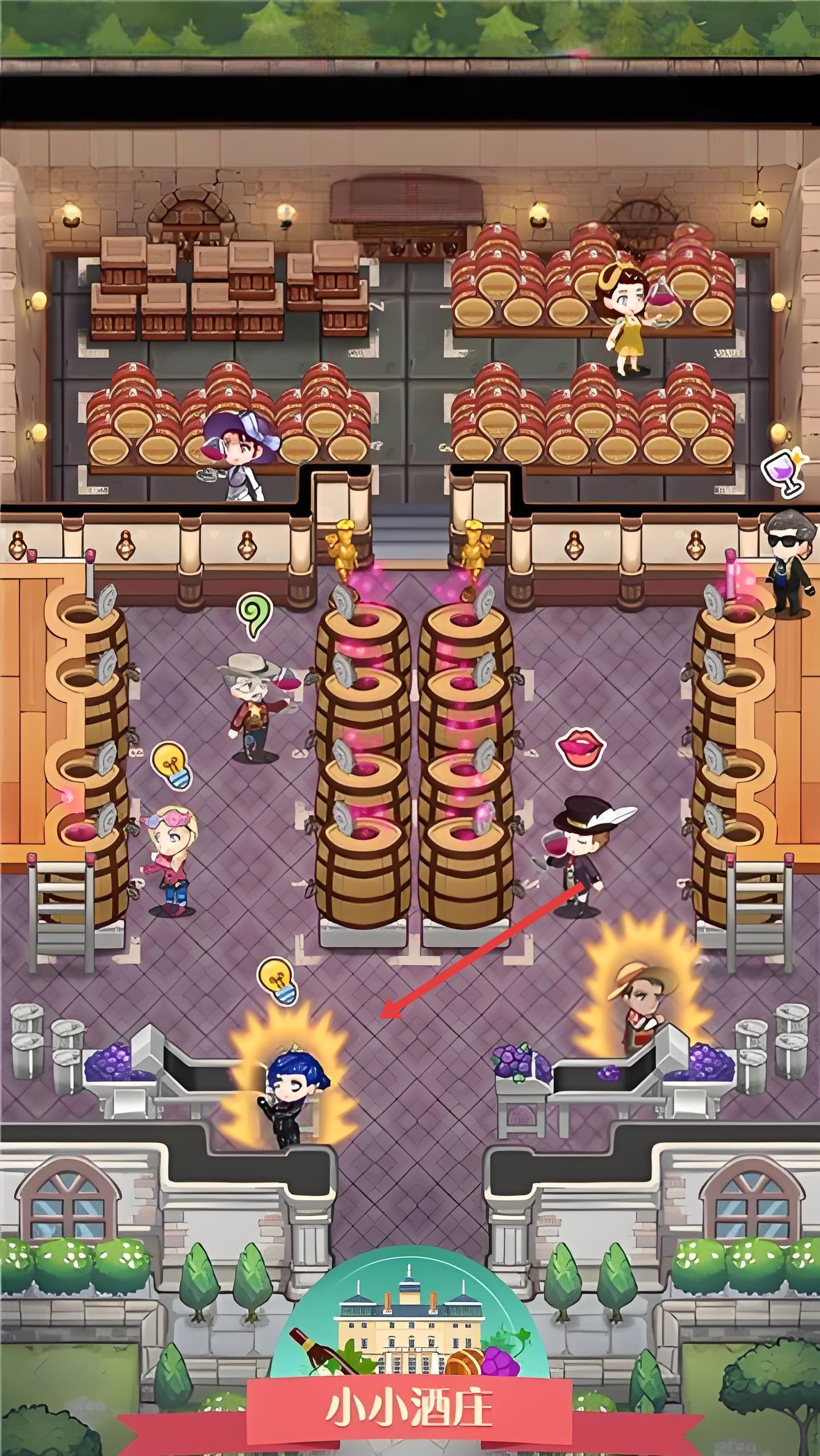 進入游戲后,在酒莊地圖里點擊帶有燈泡標記的區域,就能觸發新的任務或玩法。