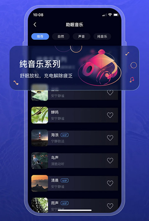 多種聲音伴你入眠。無論是大自然的和諧聲響,還是抒情音樂的美妙旋律,這款軟件都收錄了豐富多樣的曲目,能滿足不同用戶的喜好,讓你在入睡前挑選到最心儀的音樂來陪伴自己。