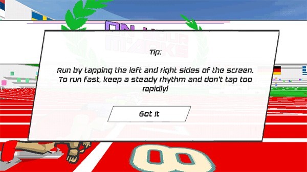 通過點擊屏幕左側(cè)與右側(cè),能夠使人物開始奔跑;若想讓人物跑得更快,就需要保持穩(wěn)定的點擊節(jié)奏。