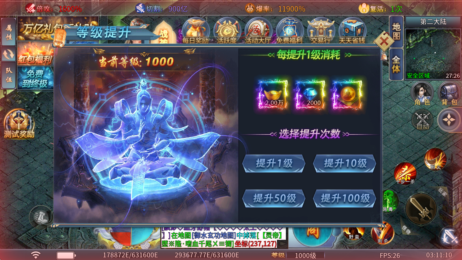 等級提升規(guī)則如下:當(dāng)角色等級達(dá)到1000級后,后續(xù)每提升一級都需消耗元寶、鉆石與等級丹這三種道具;一旦角色等級達(dá)到當(dāng)前大陸的上限,即可開啟前往下一大陸的通道。