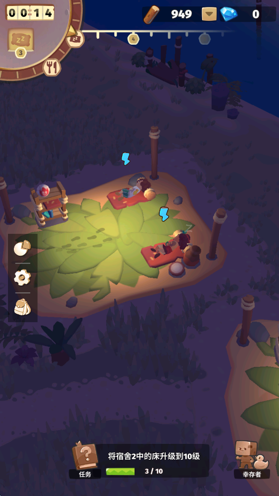 到了夜晚就是休息時間,大家會通過睡覺來補(bǔ)充體力。