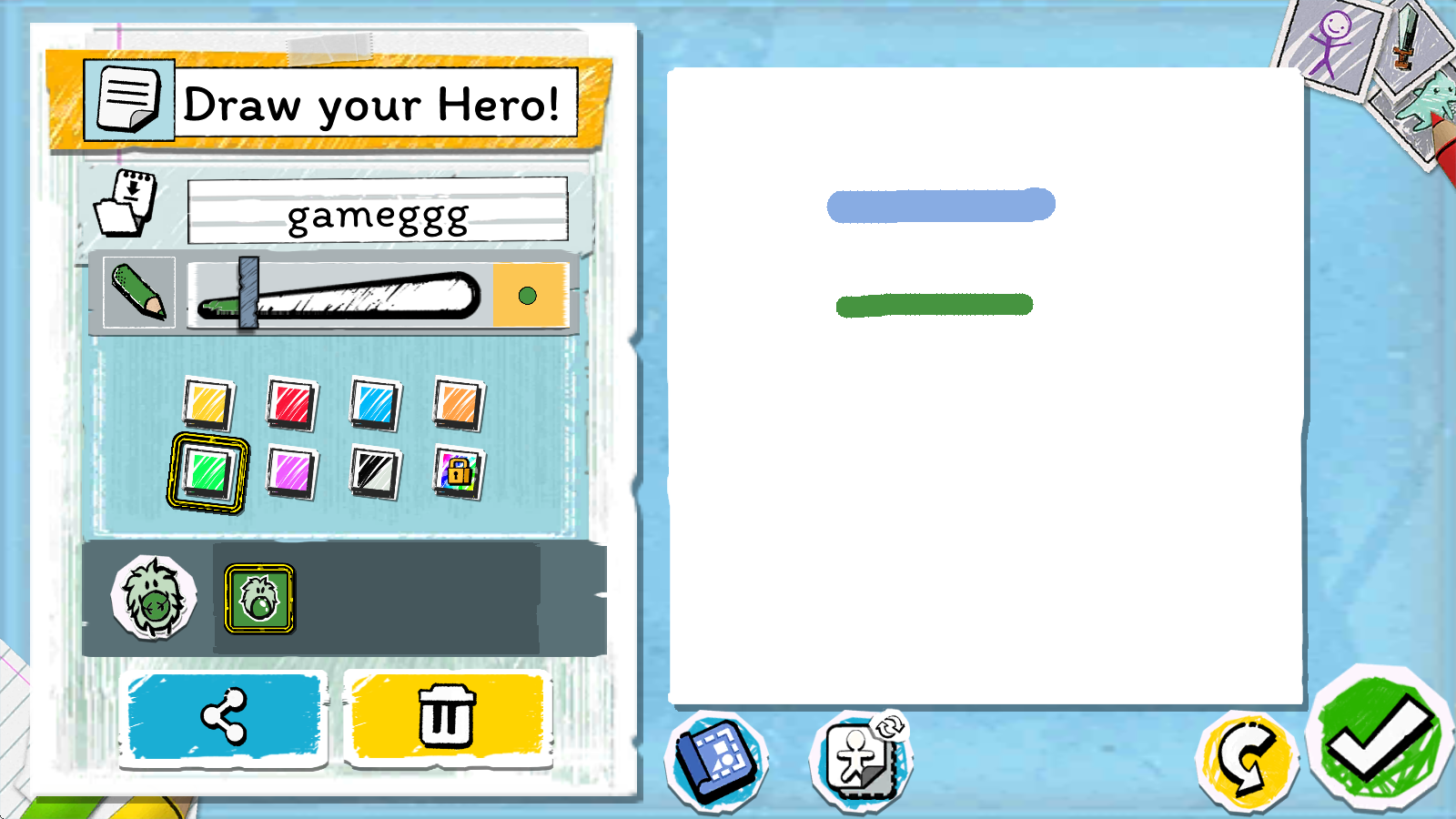 進入游戲后,第一步是用畫筆繪制你的英雄,左側能調整畫筆的顏色、粗細等細節。
