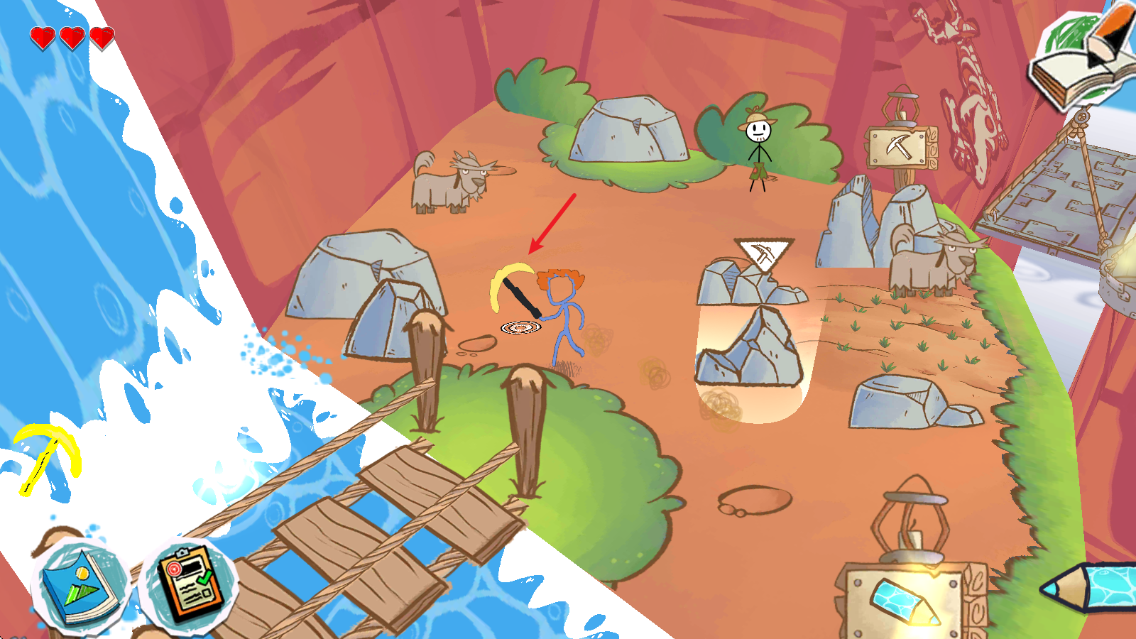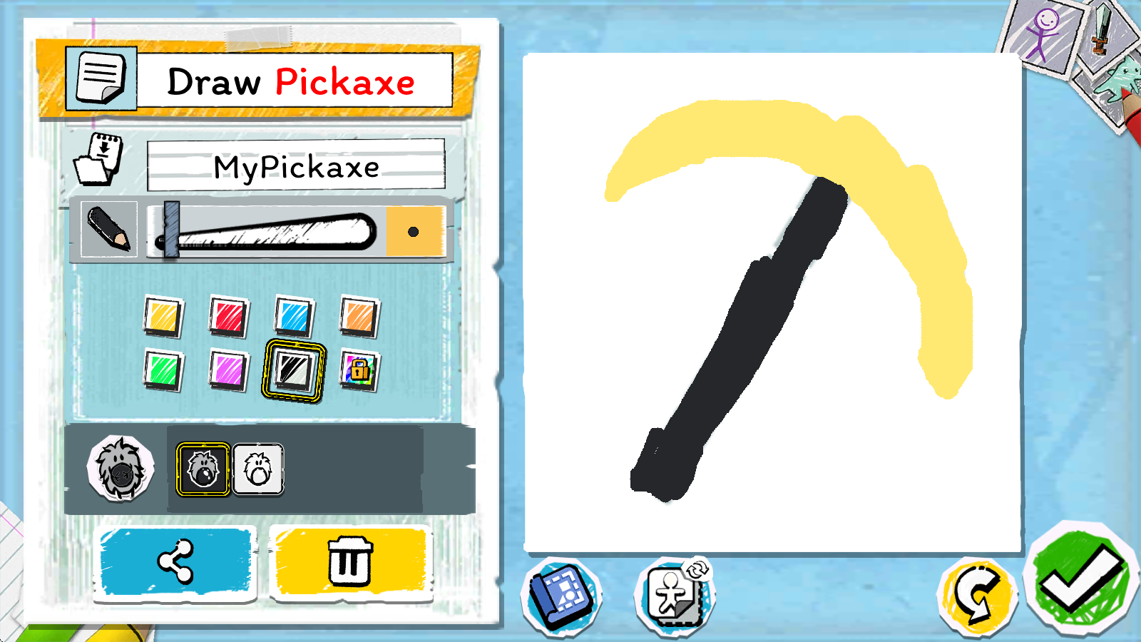在挑戰的過程里,還得借助繪畫來獲取部分道具,像這里的鎬就是其中之一。
