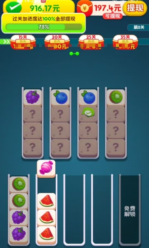部分杯子里存在一些帶有問號的方塊,把最上方的方塊挪開后它們就會自動顯現。