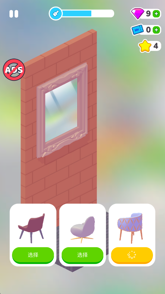 消耗鉆石從三種家具中選擇一種進(jìn)行裝修。