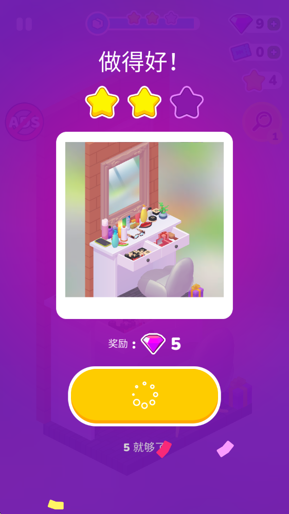 完成擺放后即可過(guò)關(guān)獲得獎(jiǎng)勵(lì)。