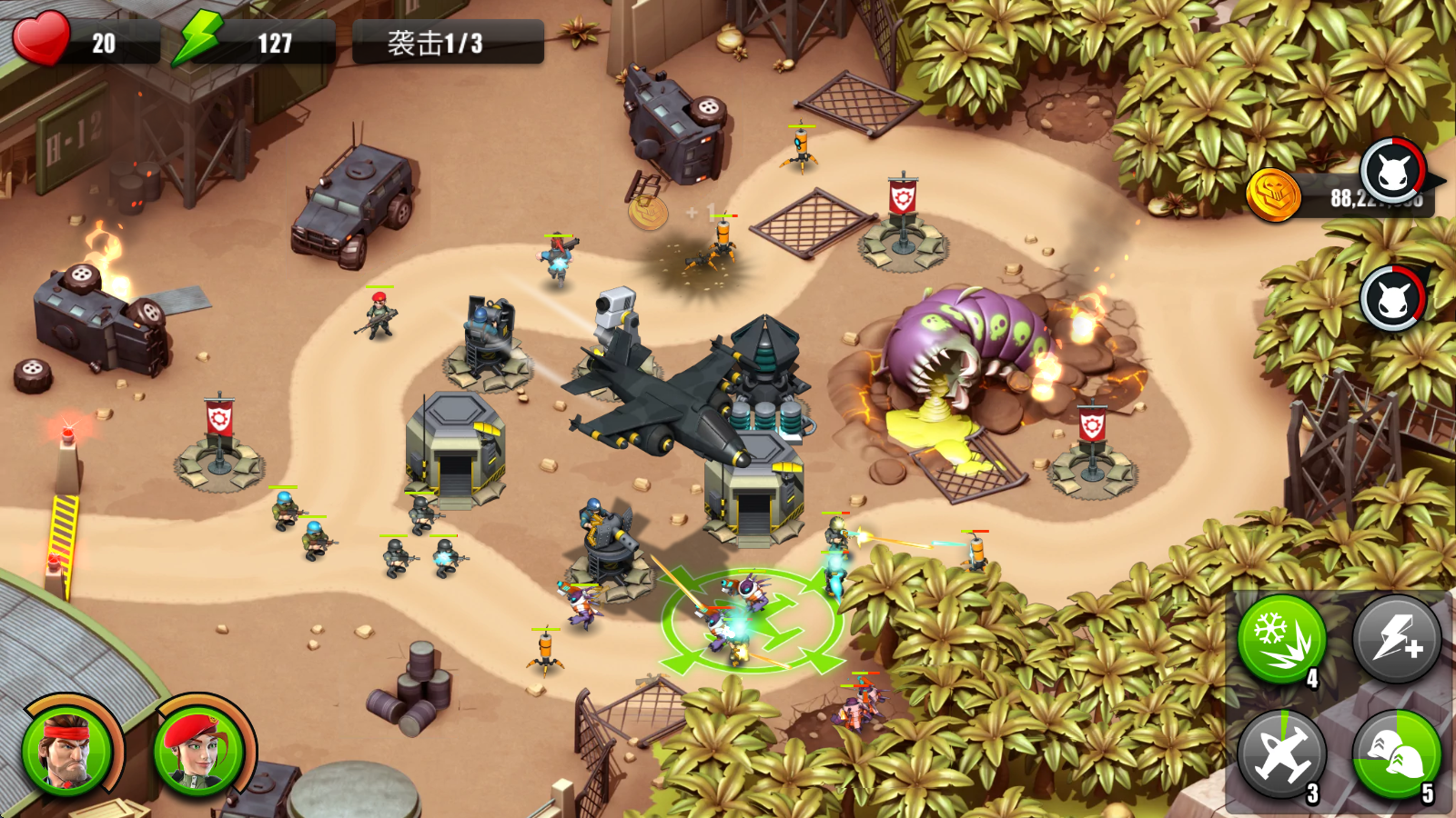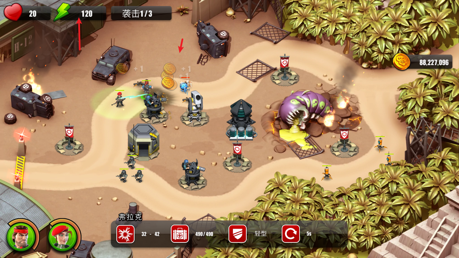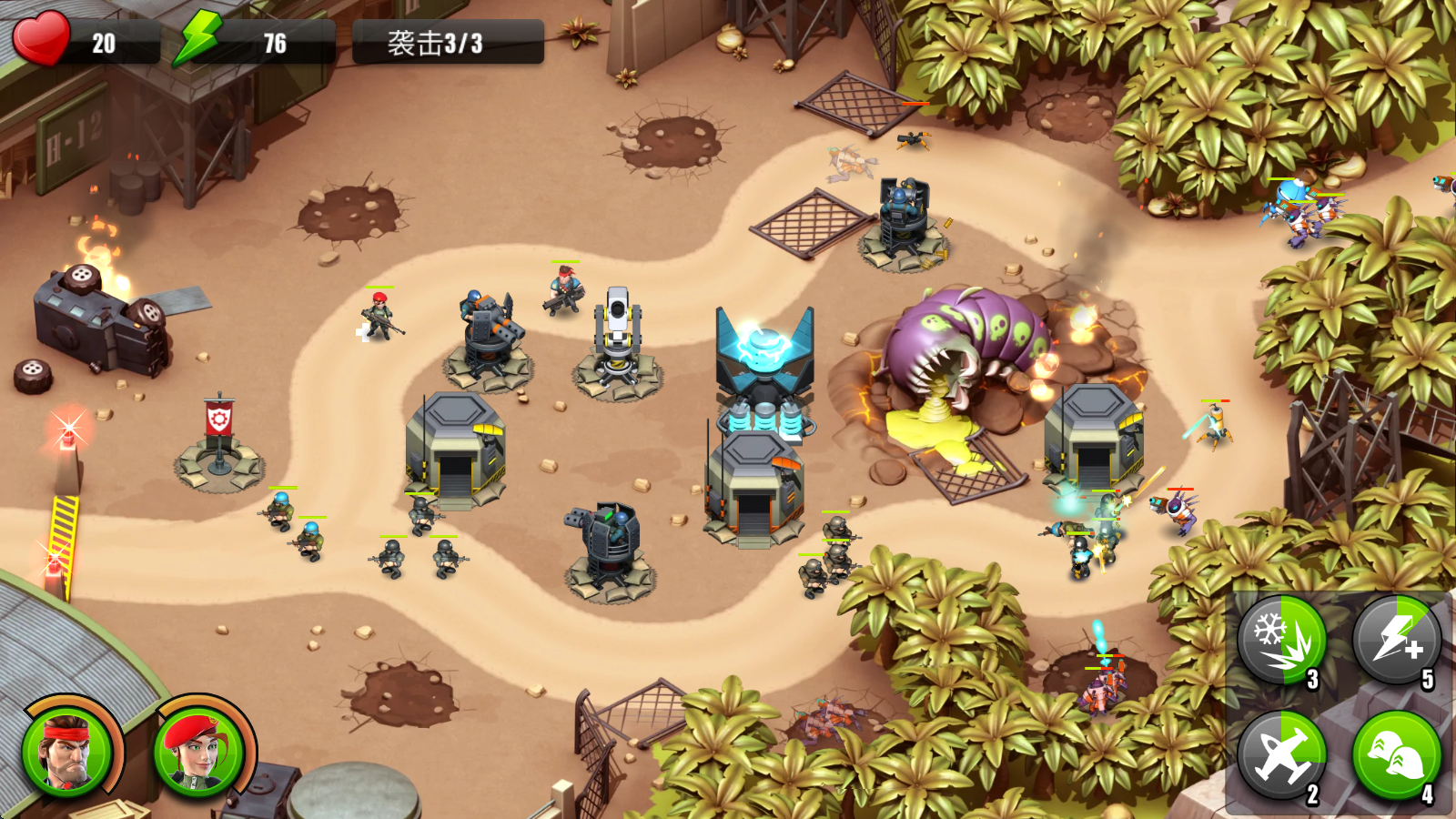 在形形色色的復雜地形里安排英雄與步兵,憑借高攻擊力的防御塔組合構建起終極防線,將所有外星人都殲滅。