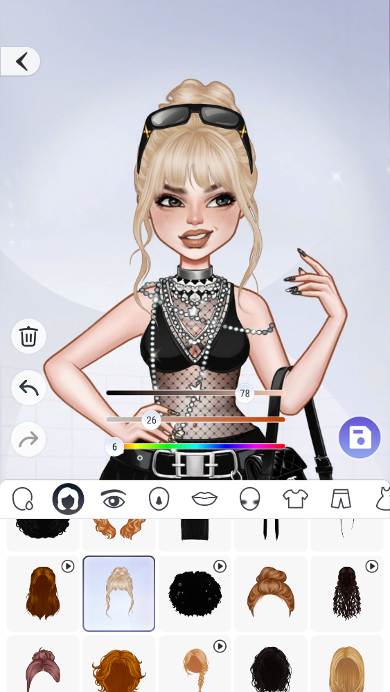 選中對應的部位后,我們就能挑選合適的類型來進行裝扮,像這里的發(fā)型就可以這樣操作。
