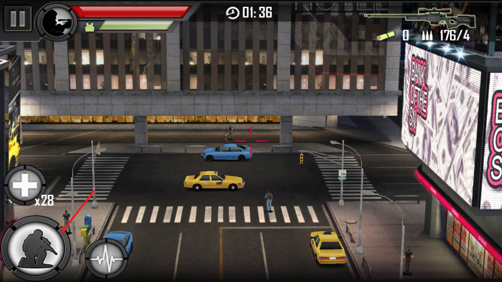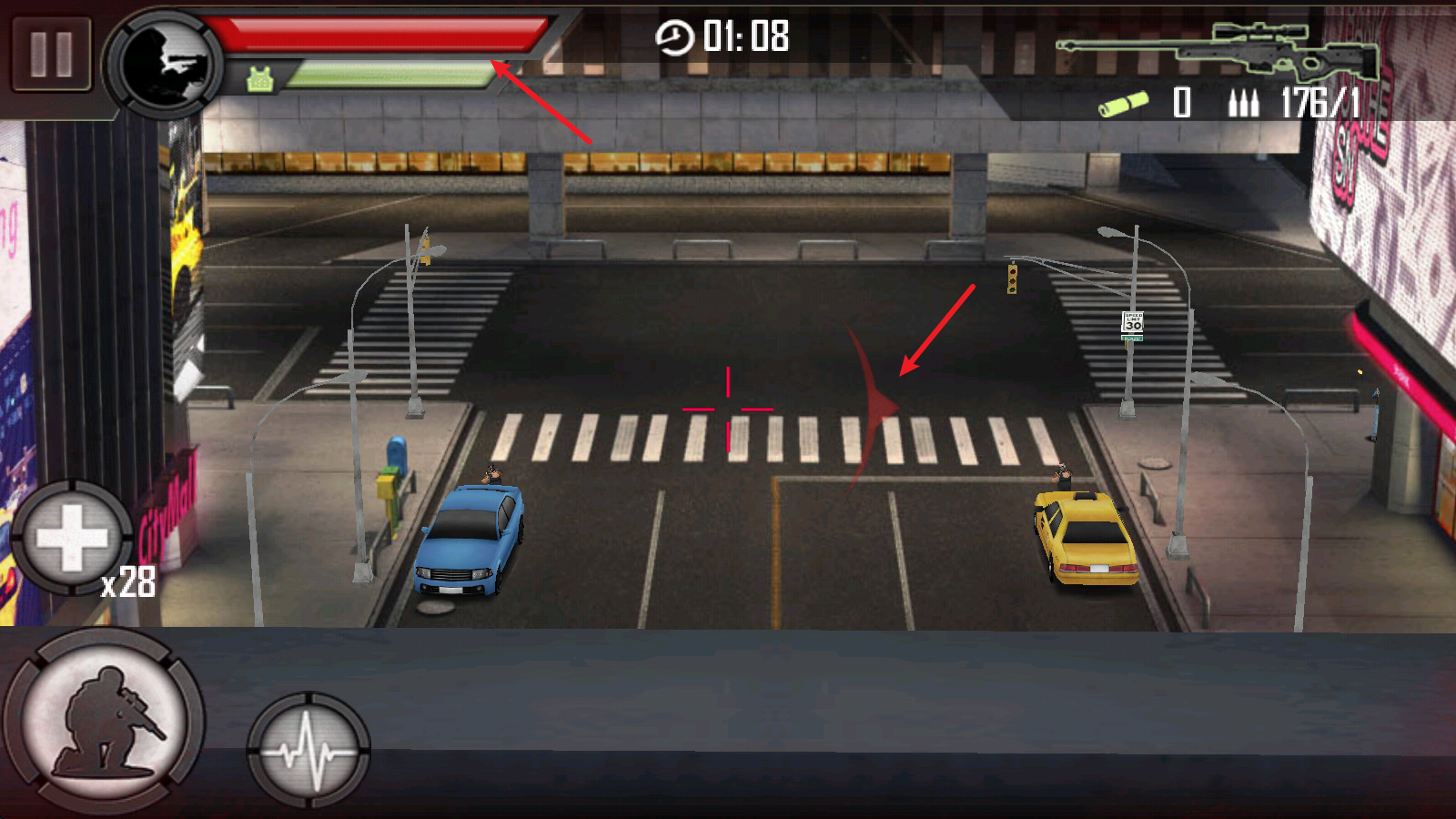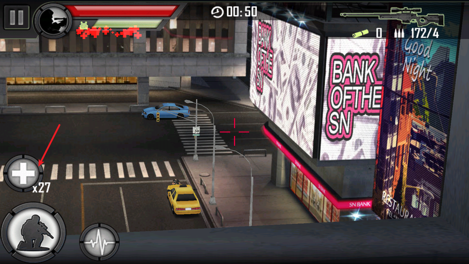 在瞄準的時候,準心會有小幅度的移動,點擊下方的心電圖按鈕能讓它短暫穩定,之后射擊會更精準。