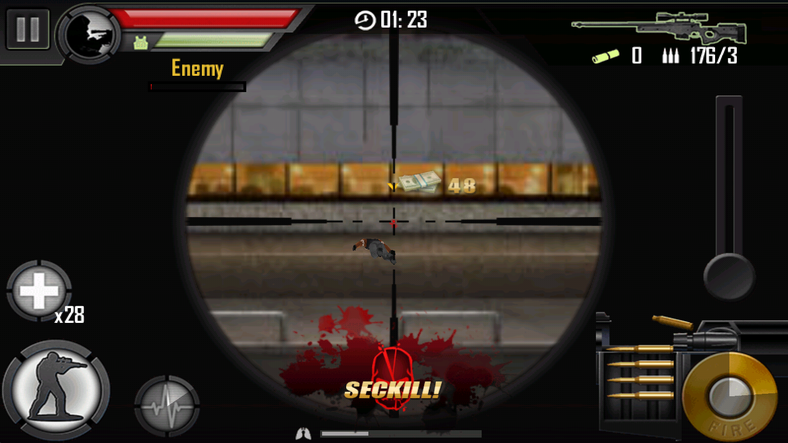 50多種不同類型的關卡等著你來挑戰,每一關都是艱巨的狙擊挑戰,用你精湛的技術去消滅所有的敵人。