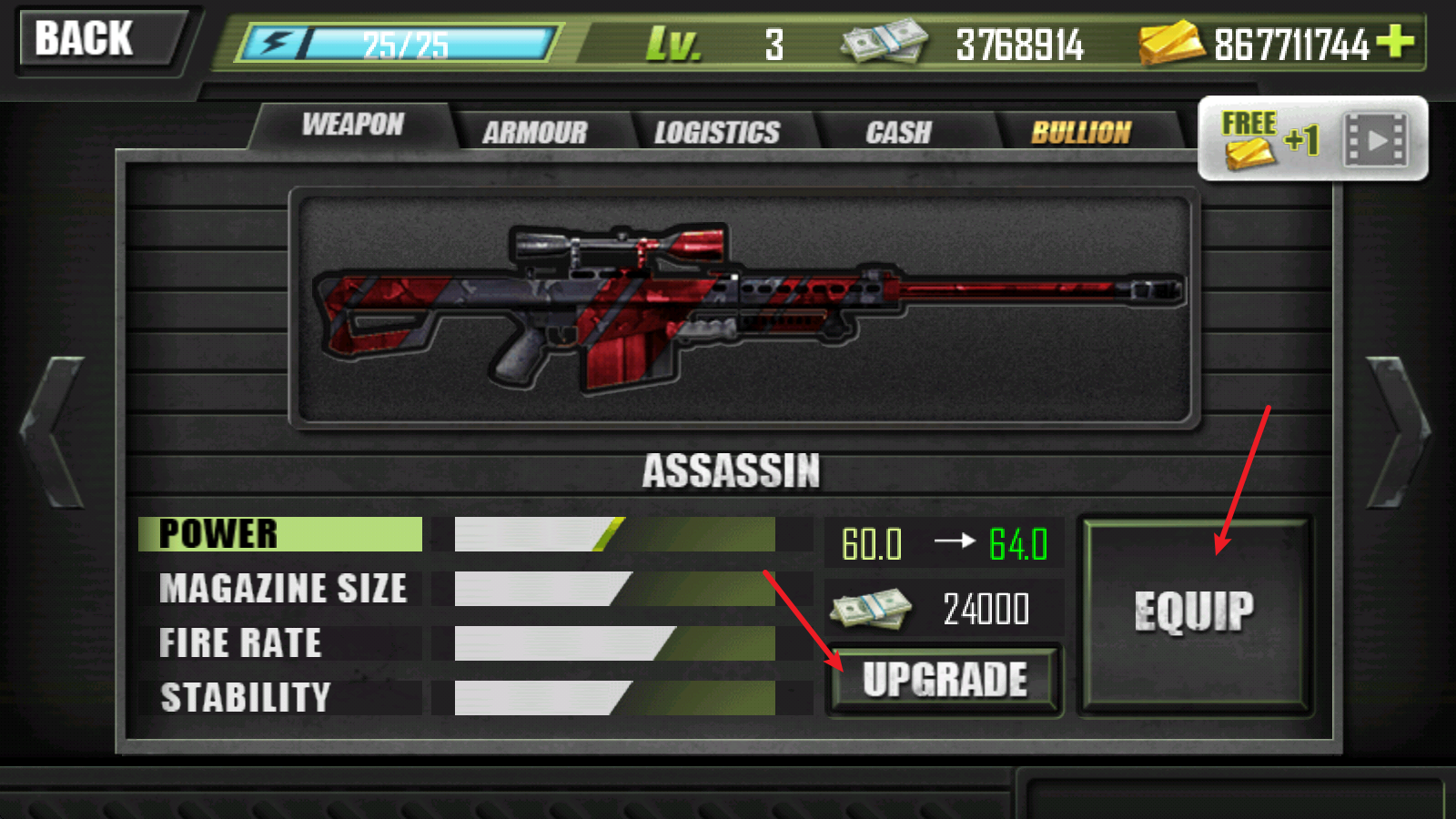 購買之后就能點擊EQUIP來裝備它,而且還能對它進行升級哦。