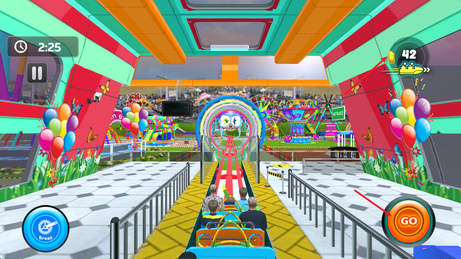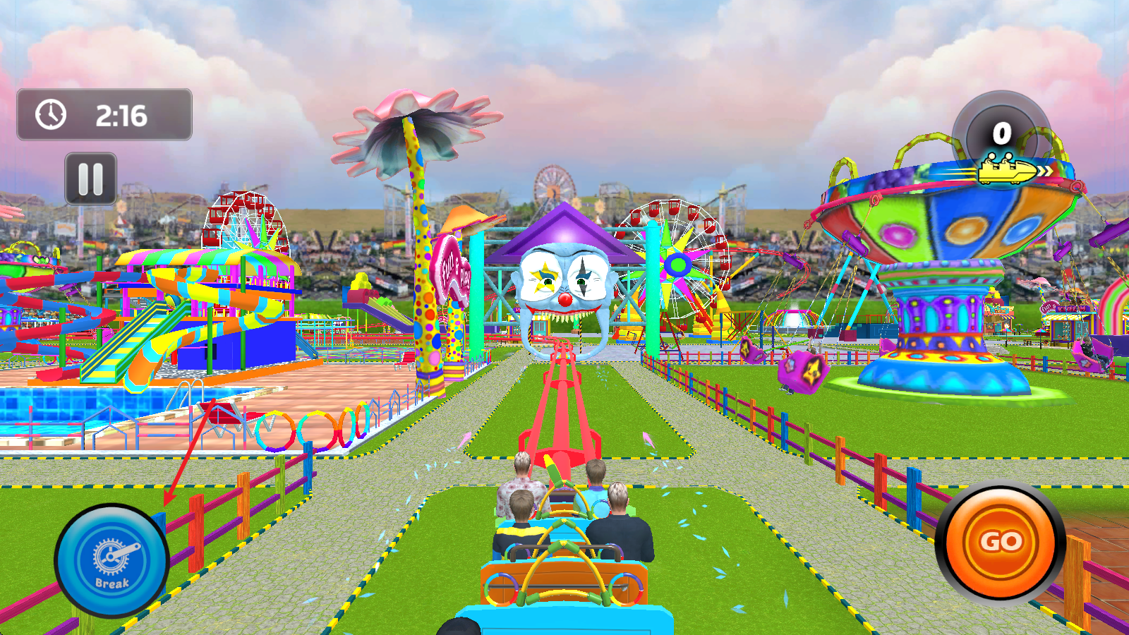 左側(cè)的按鈕可以讓你的過(guò)山車緊急停止。