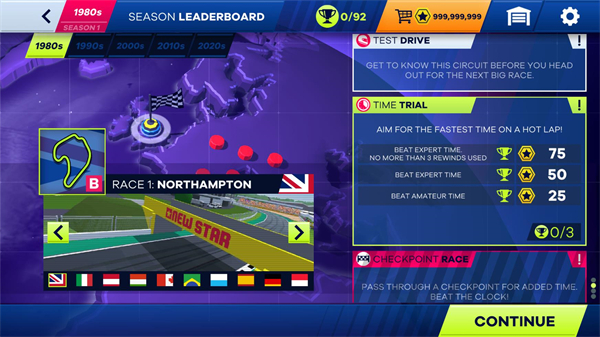 在主界面點擊career選項,就能挑選不同的比賽類型進行游玩,選好之后即可正式開始游戲。