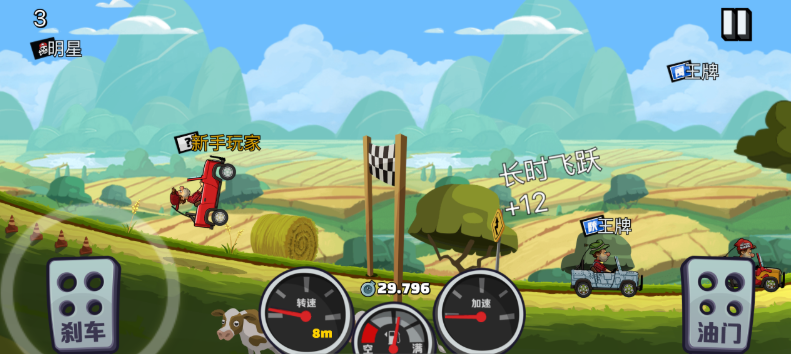 正式啟動后,點擊右邊的油門來加速,左邊的剎車用于減速。