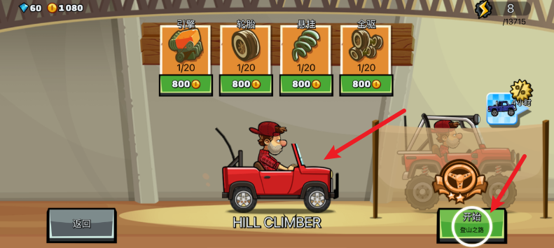 在比賽開始前,我們可以去選擇不同的車輛進行挑戰。