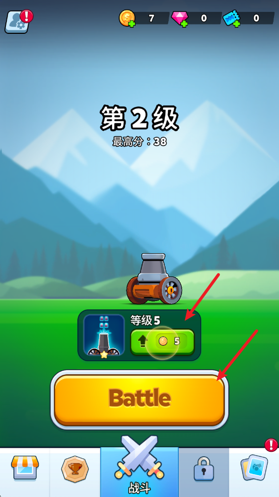 在開始關卡挑戰之前,我們能夠使用金幣對自己的大炮進行升級。